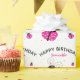 Adorable smiling illustrated ladybug happy birthday repeat pattern with pink polka dots. Easy to personalise.