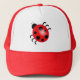 Ladybug [ladybird] motif on hat. Customise with your own text and clors.
