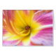 Beautiful yellow and pinks of this lilly surround a resting ladybug.