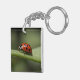 Add a touch of nature-inspired charm to your accessories with this adorable keychain. This cute ladybug is perched on a vibrant green stem, a delightful way to bring a bit of the outdoors wherever you go.