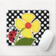 Ladybug on Black and White Polka Dots Mouse Mat