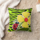Ladybug on Chartreuse Zebra Stripes Animal Print Cushion