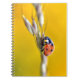 Macro of seven spots ladybug (Coccinella septempunctata) on stem on yellow background
