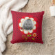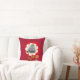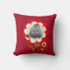Customise this pillow with your own photo! Black polka dots on red background, graphic flowers and cute ladybug design.