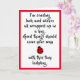 This card has a cute little red ladybug with black spots, and a short poem by an unknown author: I'm sending luck and wishes all wrapped up in a hug. Good things should come your way with this tiny ladybug.