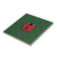 Four types of ladybugs; seven-spotted, two-spotted, pink-spotted, and Asian; make a polka dot pattern on a green background. Also called ladybirds or lady beetles, these insects protect farms and gardens from pests, particularly aphids. This tile can be framed to create a trivet or placed inside a wooden gift box lid. Tiles without a frame will also fit inside the large gift box to create a matching set. Customise the monogram with your initial to make it your own.