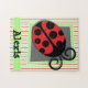Ladybug; Red and Lime Green Stripes Jigsaw Puzzle