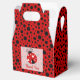 These cute birthday party favour box feature a cute ladybug and trendy typography on a black and red polka dots background.