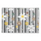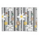 Whimsical, cute teal ladybug on grey and black stripe background featuring retro daisy white, yellow, brown floral pattern.