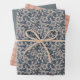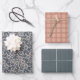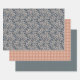 A playful 3 paper giftwrap set of playful ladybugs interweaving through daisies, along with a pink plaid and a classic stripe in blue.