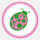 A pink and green ladybug is crawling on this sticker! Use these cute ladybug stickers as envelope seals, for invitations, crafts, scrapbooks, business, home, office, school, class, etc....The design is from an original ilustration.