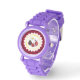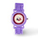Cute, whimsical animal theme featuring mum, dad and baby ladybug out for a stroll. Mrs. Ladybug has a daisy flower umbrella. Red and black polka dot background and red glitter watch band for an adorable unique look.