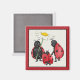 Cute, whimsical art featuring mum, dad and baby ladybug out for a stroll in the garden. Mrs. Ladybug has a daisy flower umbrella.