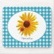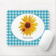 A cute blue gingham mousepad with a bright and cheery yellow sunflower with a cute little red spotted ladybug sitting on its petals. Personalise by adding your name to this country style design sure to put you in a happy summertime picnic mood!