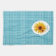 A cute blue gingham towel with a bright and cheery yellow sunflower with a cute little red spotted ladybug sitting on its petals. Personalise by adding your name to this country style design sure to put you in a happy summertime picnic mood!