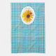 Ladybug Sunflower Turquoise Gingham With Name Tea Towel