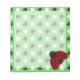 A pattern of cute red and black ladybugs and white daisies are on a light green background. A larger ladybug is in the bottom right corner.