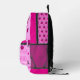 Typographic name text hot pink and pinks with black and white custom girl backpack. Fun personalised graphic ladybug / ladybird pattern design personalised backpack, ideal for, school, college, school camp or nature trips out. Personalise with your own name, currently reads Beverley for help with personalisation and other name lengths please contact me. © Design by Sarah Trett for www.mylittleeden.com
