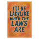 Feminist artwork features the powerful slogan “I’ll Be Ladylike When The Laws Are,” painted in bold blue letters against a vibrant orange background. Inspired by suffragette posters and contemporary protest art, the piece combines hand-painted texture with a modern graphic punch.