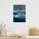 This vintage travel advertising poster is for Lago Di Como, Italy. It shows a steam boat with the name Como on the side. In the distance are the mountains of Italy.