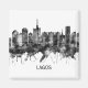 Black and White Skyline of Lagos, largest city of Nigeria, sprawls inland from the Gulf of Guinea across Lagos Lagoon