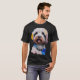 I give wanted to give this a 4 instead of a 5 because these Basic DARK T0shirts run unexpectedly SLIM or Narrow. Which is great if you do not have a potbelly, but I have a paunch. It isn't the shirt's fault that I've got a beer belly. The design and shirt itself is a quality cotton shirt. The color is more of a deep purple, but still a very pretty color. The Basic DARK T-shirts run a bit SLIMMER than the Basic Ts. The neck is a fraction narrower (or seems to be narrower) also. I'm a paunchy middle-aged woman and my neck is 12 inches (31cm) thick and the neckline fell about the same as in the photo of the man, and I had the desire to tug it a bit. So if you're a thick necked man or like loose shirts, be aware these are slimmer shirts. Once I get rid of my lockdown paunch it'll look great. The shirt washed well in cold water with no apparent bleeding. We don't have a dryer, so it hung dry. Did not shrink. Love the colors and the design. The design looks smaller on my shirt than it does on the model on-line. But still, it looks good on the shirt. The printing looks as it does on the model, just the size seems fractionally smaller. Washed garment in cold water, hung dry and design appeared unaffected.