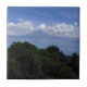 Stunning and serene Lake Atitlan framed with volcanoes and forest in Guatemala.