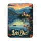 A serene and nostalgic depiction of Lake Bled, Slovenia, renowned for its picturesque beauty and tranquil atmosphere. The design captures the iconic Bled Island with its charming church, the mediaeval Bled Castle perched on a cliff, and the surrounding Julian Alps. Rendered in a vintage style, the artwork evokes the enchanting and idyllic charm of Lake Bled, inviting viewers to experience its scenic landscapes and serene waters.