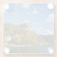 Glass photo coaster with Bled castle on a high cliff above Lake Bled, surrounded by trees with foliage in autumn colours in a beautiful fall landscape in Bled, Slovenia.