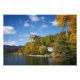 Photo print of Bled castle on a high cliff above Lake Bled, surrounded by trees with foliage in autumn colours in a beautiful fall landscape in Bled, Slovenia.