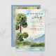 Lake Evergreen Watercolor wedding save the date with your own photo one side and idyllic scenic landscape on the other. Watercolor country scenery with evergreen trees and greenery, blue mountains and a still lake under a clear blue sky. The design is in shades of dusty blue, periwinkle and green and is lettered with elegant script and modern typography. Please browse my Lake Evergreen collection for matching items or message me to create the templates you need.