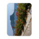 A beautiful view of the Rock of Garda and colourful flowers by Lake Garda in Italy printed on a souvenir fridge magnet.