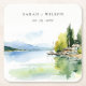 Lake Geneva Switzerland Watercolor Scape Wedding Square Paper Coaster