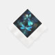 Two transparent, luminous, turquoise, artistically drawn dragonflies on night background with luminescent lake algae and fireflies. Glowing dragonfly.