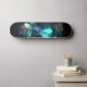 Two transparent, luminous, turquoise, artistically drawn dragonflies on night background with luminescent lake algae and fireflies. Glowing dragonfly.