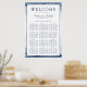 Create a unique impression while helping your wedding party find their seats with this eye-catching wedding 12 table seating chart poster. It features a watercolor styled blue stained backdrop Your details lay in the centre in a dark navy colour matching the watercolor scheme.
