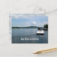 Lake home new address postcards. This relocation announcement card contains photography of Lake Winnipesaukee at the docks in Meredtih, New Hampshire. The perfect moving card if the new home is a lake house.