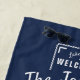 Add custom style to your weekend home with our lake house beach towel. The navy blue and white towel is completely personalizable, perfect to take pictures for Instagram. Start personalising with Lake or Beach name, following by Welcome to " The Family Name" and end with your type of house and your year established. Your family logo contains canoe paddles and a nautical rope frame