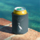 This heron silhouette canned beverage cooler would make a fun wedding favour for guests and features a silhouetted Great Blue Heron / Egret and your custom text in white on a dark teal blue background - by katz_d_zynes