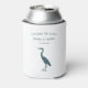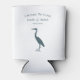 This heron silhouette canned beverage cooler would make a fun wedding favour for guests and features a silhouetted Great Blue Heron / Egret and your custom text in dark teal blue on a white background - by katz_d_zynes