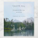 Rustic lake in the mountains "Our adventure begins" wedding thank you wine label featuring an oil pastels sketch of a lightly rippled but calm lake, with distant evergreens, cedar trees and rock structures reflected upon its surface, and distant mountains under a blue sky with wispy clouds from the point of view of a paddler kayaking on the lake or a hiker on the shore - mixed fonts text is a coordinating dark teal blue - by katz_d_zynes | Search keywords teal+adventure under the "Products" tab in my store to see coordinating stationery and party goods