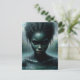 Postcard features eerie artwork of a supernatural entity haunting Lake Lanier. In this Southern gothic painting, a mysterious female figure emerges from the water for her creepy portrait, surrounded by abstract greenery with an ethereal glow that creates a haunting and captivating atmosphere. The dark, intense eyes and dripping hair add to the enigmatic and surreal quality of the scene. The woman appears to be African in heritage.