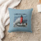 A lovely stormy day on Lake Michigan with the waves splashing on the lighthouse large square throw pillow.