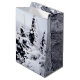 A photograph showing just a glimpse of the mountain lake through snow-covered fir trees. This landscape picture is digitally manipulated to look like a watercolor.<br />