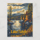 A captivating vintage portrayal of Lake Tahoe, nestled in the Sierra Nevada mountains on the border of California and Nevada. The design highlights the lake's crystal-clear waters, surrounded by towering pine trees and majestic mountain peaks. Rendered in a nostalgic style, the artwork captures Lake Tahoe's serene beauty and pristine natural environment, inviting viewers to appreciate its tranquil atmosphere and outdoor recreational opportunities.