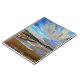 An art design of a lake with the dramatic sky reflected in the lake water. Hills and fields surround the lake.