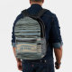 Lake Water Blue Beige Black Wavy Stripes Printed Backpack