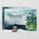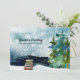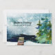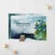 Three stately green pine trees stand on the lake's edge against an aqua coloured sky dotted with snowflakes. The greeting on front of our holiday new address announcement flat card reads "Christmas Greetings from our new home." You can revise this text as well as all text on back of the card using the personalisation template prior to checkout. Part of our Holiday Moving Announcement Collection, this change of address design is also available on a postcard.