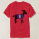 I give wanted to give this a 4 instead of a 5 because these Basic DARK T0shirts run unexpectedly SLIM or Narrow. Which is great if you do not have a potbelly, but I have a paunch. It isn't the shirt's fault that I've got a beer belly. The design and shirt itself is a quality cotton shirt. The color is more of a deep purple, but still a very pretty color. The Basic DARK T-shirts run a bit SLIMMER than the Basic Ts. The neck is a fraction narrower (or seems to be narrower) also. I'm a paunchy middle-aged woman and my neck is 12 inches (31cm) thick and the neckline fell about the same as in the photo of the man, and I had the desire to tug it a bit. So if you're a thick necked man or like loose shirts, be aware these are slimmer shirts. Once I get rid of my lockdown paunch it'll look great. The shirt washed well in cold water with no apparent bleeding. We don't have a dryer, so it hung dry. Did not shrink. Love the colors and the design. The design looks smaller on my shirt than it does on the model on-line. But still, it looks good on the shirt. The printing looks as it does on the model, just the size seems fractionally smaller. Washed garment in cold water, hung dry and design appeared unaffected.