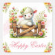 Lamb, Flower Crown & Wooden Gate Happy Easter Square Sticker